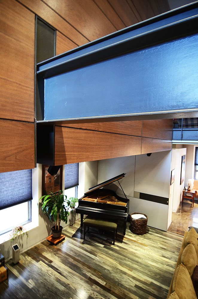 Original brick inside and out is combined with new materials to offers a balance between old and new. Moments such as a full height window in the bedroom looking over the living room and a catwalk running alongside it showcases the double height living room.